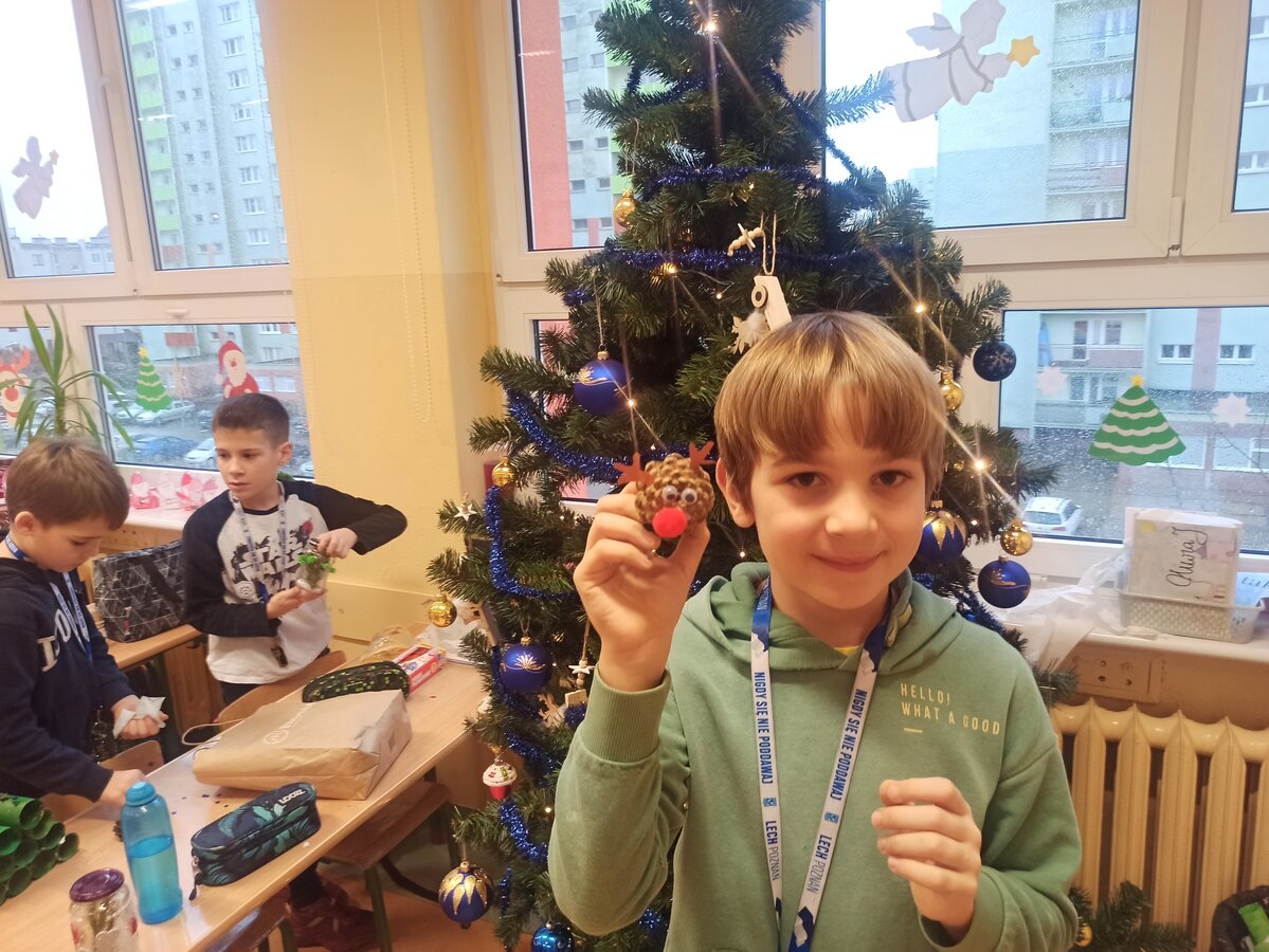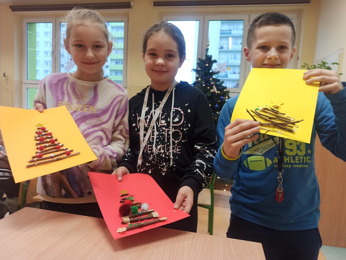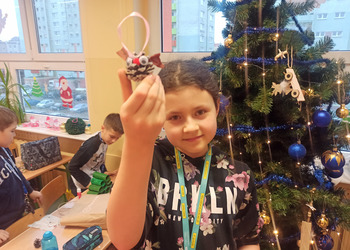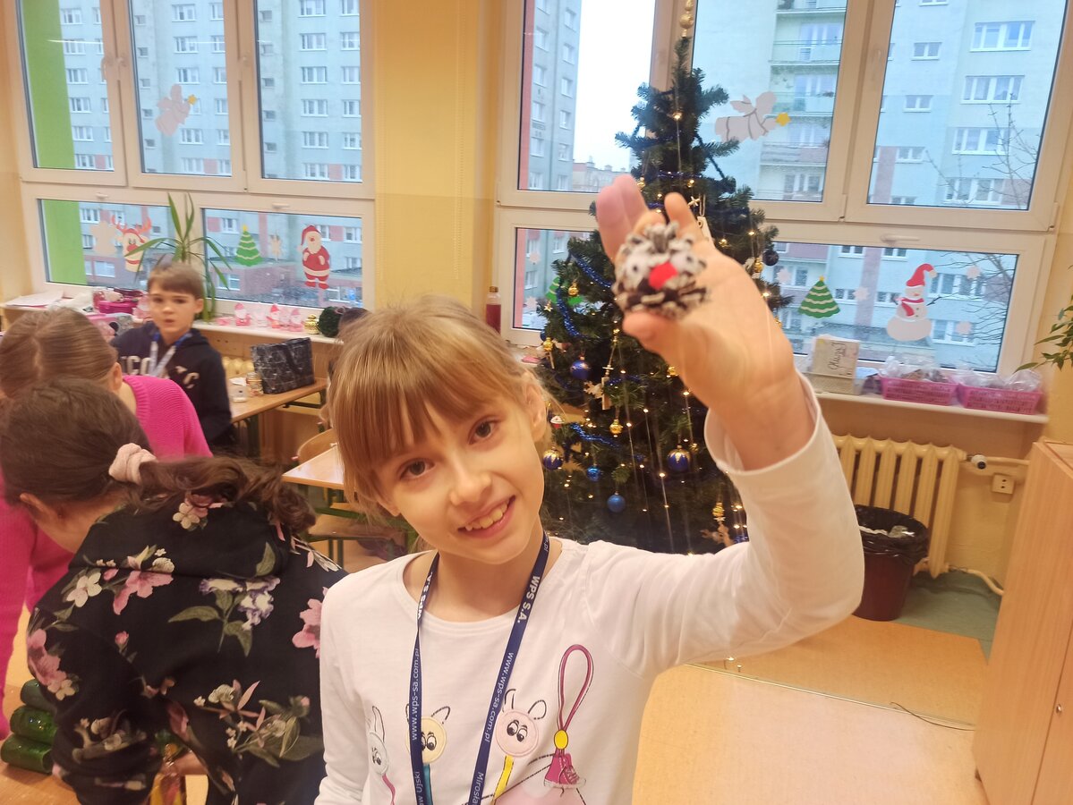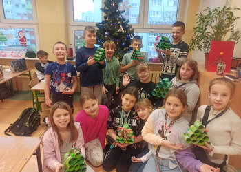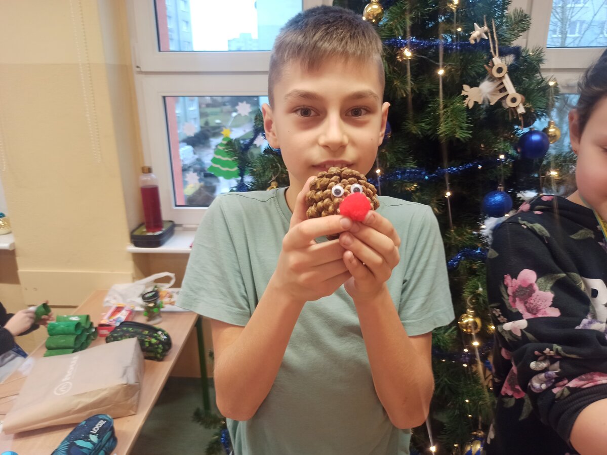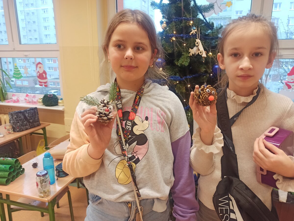- Podczas pracy wykorzystaliśmy rolki po papierze, aby zrobić z nich piękne choineczki, szyszki stały się reniferami, z patyczków i odrobiny błyszczących ozdób stworzyliśmy piękne choineczki a ze słoiczków, kawałka gałązki iglastej i kilku ozdób- piękny świąteczny stroik. Uczniowie należący do Wielkiej Drużyny Zielonych wykazali się niezwykłą pomysłowością i kreatywnością. A wykonanie takich ozdób było nowym doświadczeniem dla dzieci, przyjętym z dużym entuzjazmem i ekscytacją - relacjonuje Anna Dwórznik - Cieślak, wychowawczyni klasy III e.