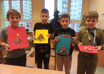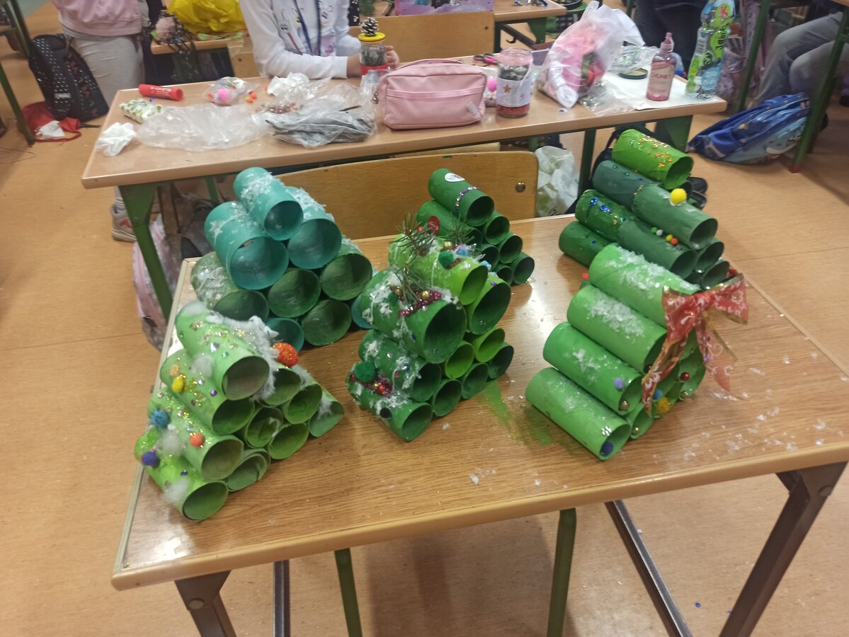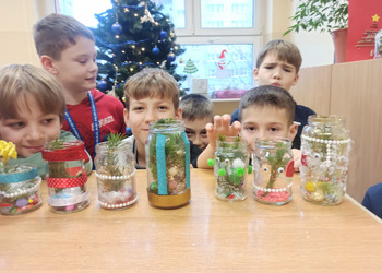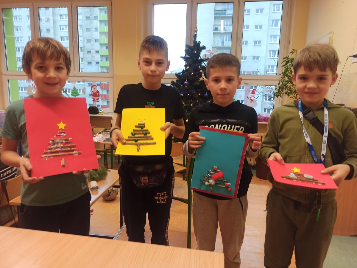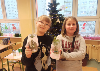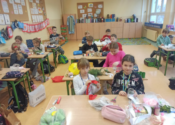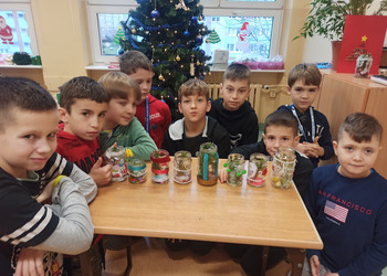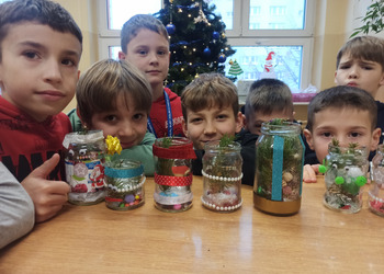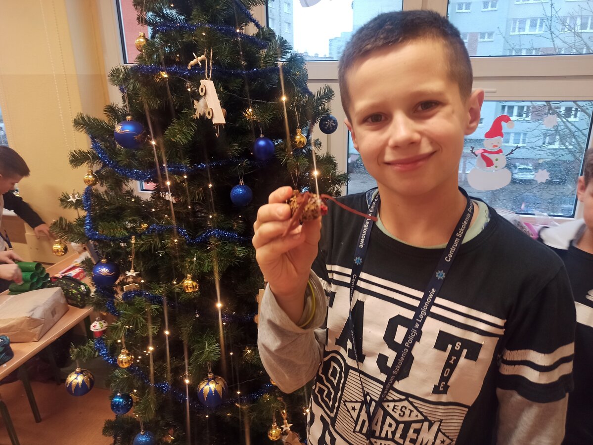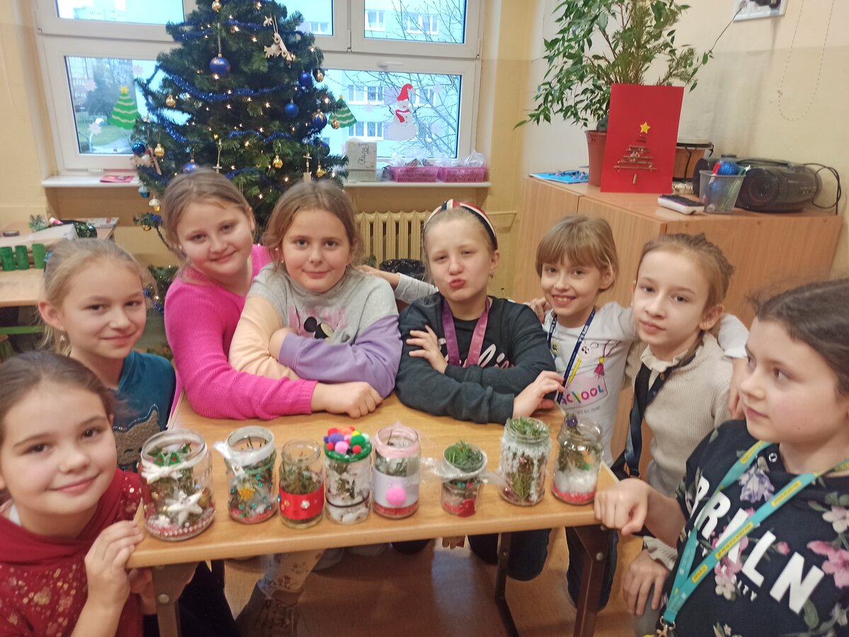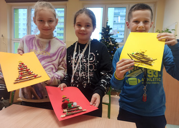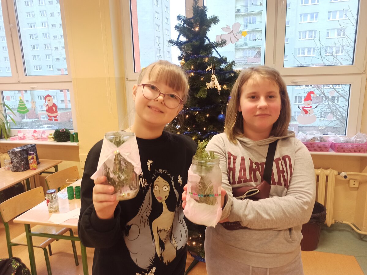 - Podczas pracy wykorzystaliśmy rolki po papierze, aby zrobić z nich piękne choineczki, szyszki stały się reniferami, z patyczków i odrobiny błyszczących ozdób stworzyliśmy piękne choineczki a ze słoiczków, kawałka gałązki iglastej i kilku ozdób- piękny świąteczny stroik. Uczniowie należący do Wielkiej Drużyny Zielonych wykazali się niezwykłą pomysłowością i kreatywnością. A wykonanie takich ozdób było nowym doświadczeniem dla dzieci, przyjętym z dużym entuzjazmem i ekscytacją - relacjonuje Anna Dwórznik - Cieślak, wychowawczyni klasy III e.