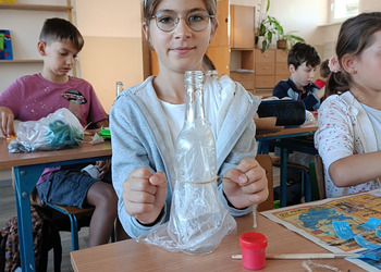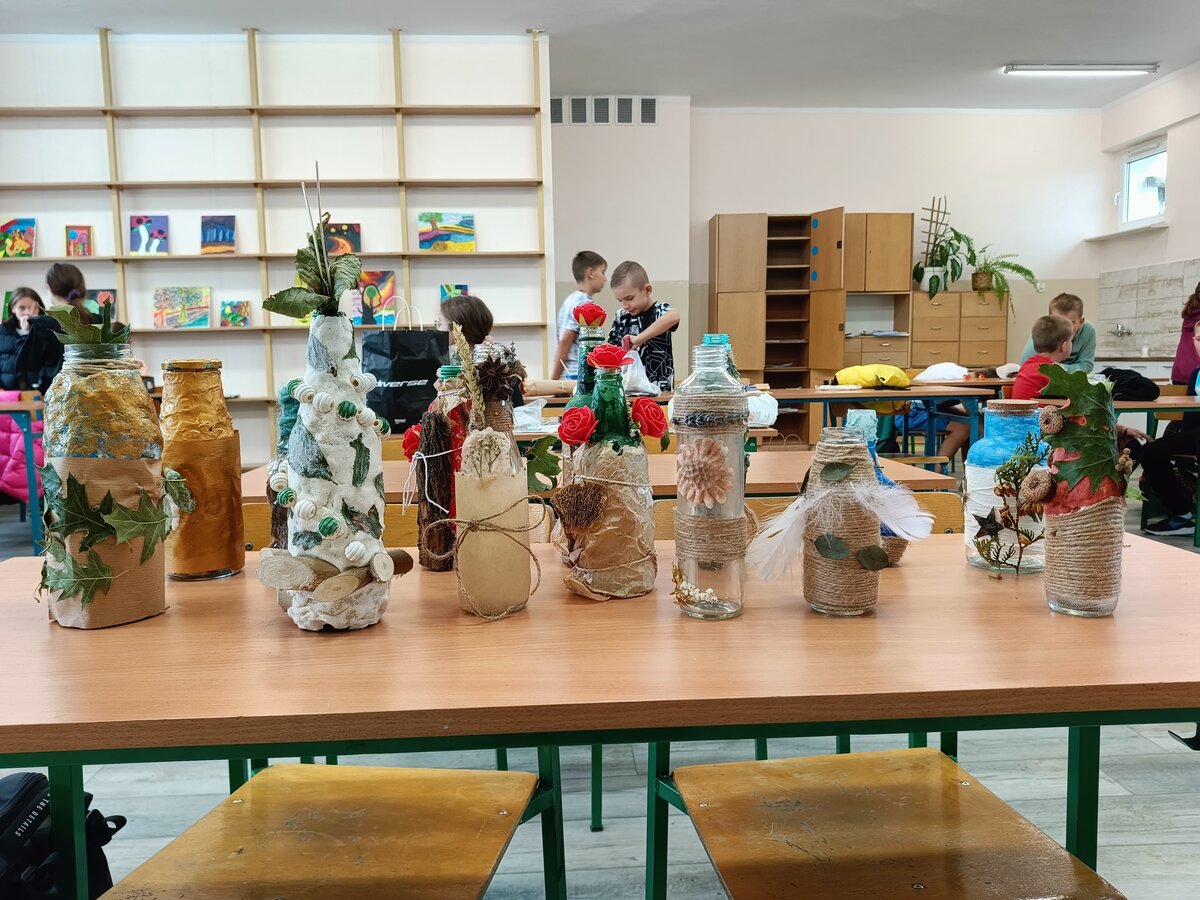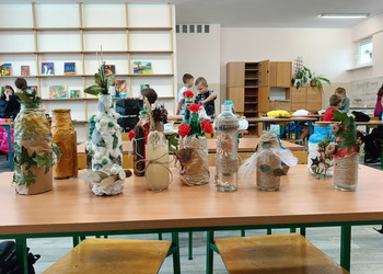 Młodzież zamieniła niepotrzebne butelki w piękne wazony. Wystarczyło tylko kilka własnoręcznie wykonanych ozdób, by zwykła butelka zamieniła się w zupełnie nową rzecz.