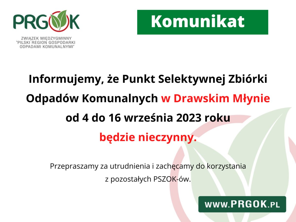 PSZOK Drawski Młyn - komunikat