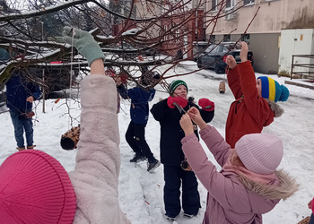 Z rolek po papierze toaletowym uczniowie własnoręcznie wykonali karmniki dla ptaków, dając drugie życie materiałom przeznaczonym do recyklingu. Następnie, podczas wspólnego spaceru w okolicach szkoły, dzieci zawiesiły swoje „ptasie stołówki”, tworząc małą, ekologiczną przestrzeń dla skrzydlatych przyjaciół.