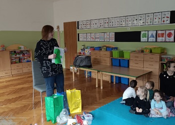 Dzieci z zainteresowaniem wysłuchały historii o tym co się stało, gdy nikt nie dbał o środowisko i wszyscy wyrzucali odpady gdzie popadnie. Przedszkolaki zgodnie przyznały, że tak robić nie wolno, a odpady trzeba segregować.